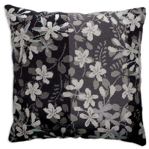 Coussin demi point Woolmark Anchor Petites fleurs en noir et blanc