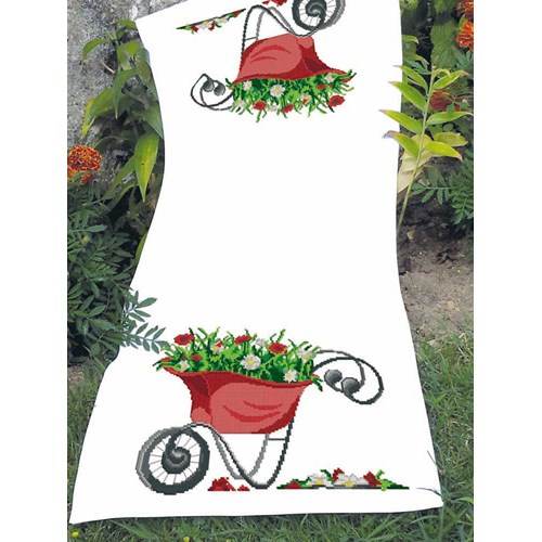 kit Chemin de table - Broderie Point de Croix compté Luc Création La brouettes aux fleurs